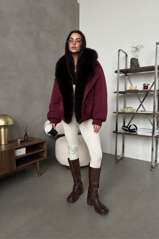 Пуховик Tannossto бордовый с мехом