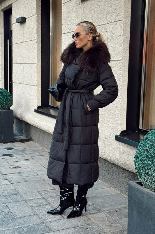 Пуховик оверсайз 2025-2026 с капюшоном. Модель со свободным кроем. Капюшон на куртке втачной. Из безусловных плюсов этой куртки можно выделить ткань. Она напоминает брезентовую и дополнительно обработана пропиткой. Таким образом парка не мокнет, не боится загрязнений. Среди многих других курток эта будет лучшим решением для стильной зимы