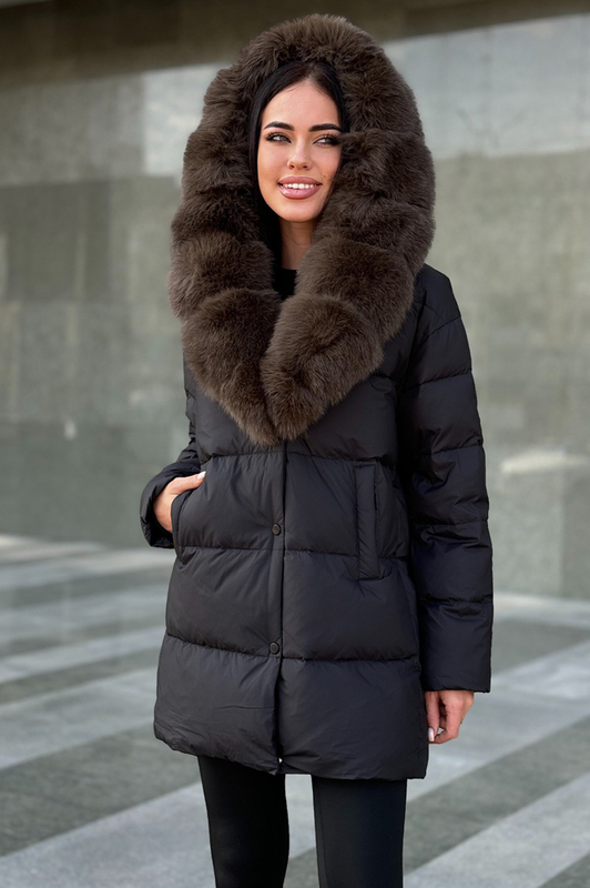 Женская куртка сшита из ткани с пропиткой с утеплителем пух-перо. Пуховик с фасоном оверсайз хорошо садится на фигуры различного типа. Воротник украшает шикарный мех натурального песца.