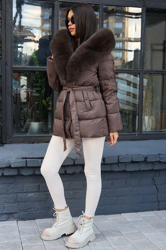 Теплый пуховик приталенный на зиму сшитый из ткани с пухом внутри. Модель выполнена как свободная длинная куртка с воротником и мехом. Застегивается на молнию и кнопки. Длинные рукава завершены тканевыми манжетами с резинками, предотвращая поддувание ветра. Недорогой и качественный пуховик создан для Российских зим и не даст нашим женщинам замерзнуть.