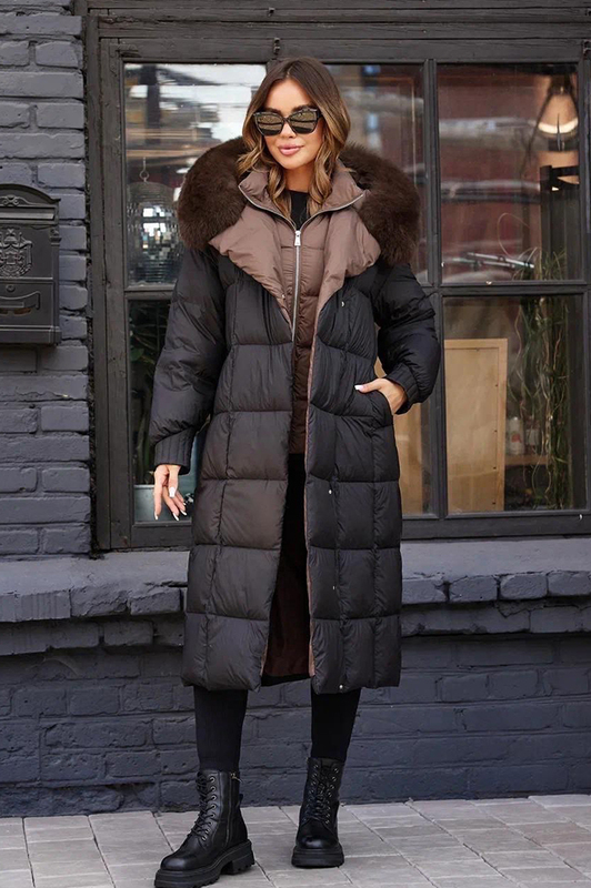 Пуховик зимний с мехом песца Vivilona