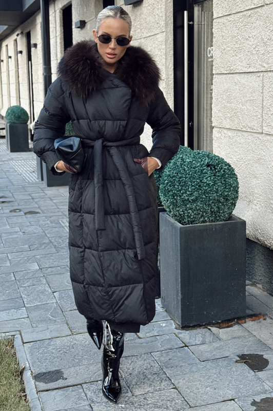 Пуховик оверсайз 2025-2026 с капюшоном. Модель со свободным кроем. Капюшон на куртке втачной. Из безусловных плюсов этой куртки можно выделить ткань. Она напоминает брезентовую и дополнительно обработана пропиткой. Таким образом парка не мокнет, не боится загрязнений. Среди многих других курток эта будет лучшим решением для стильной зимы
