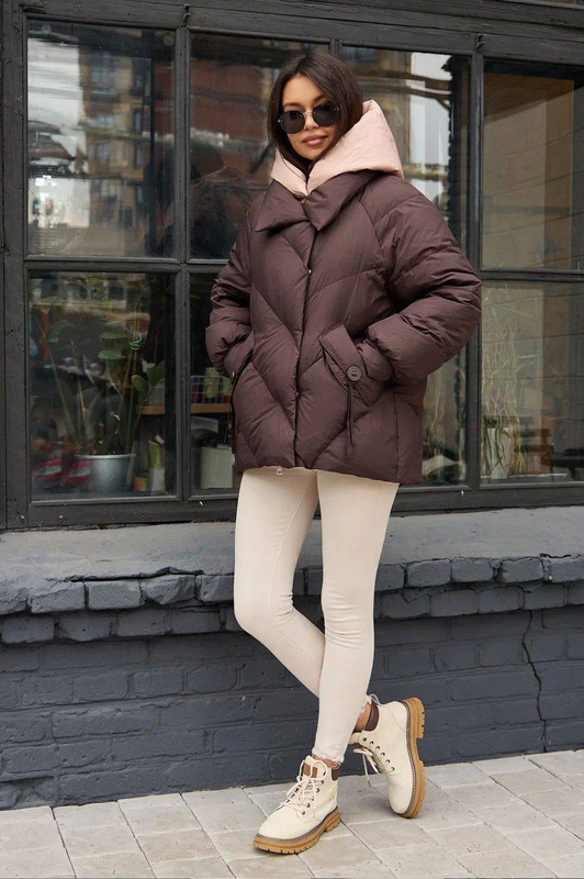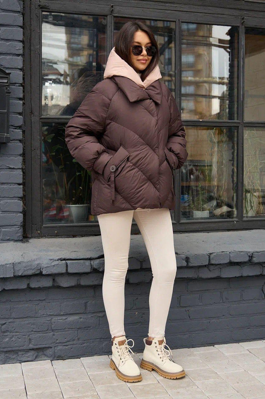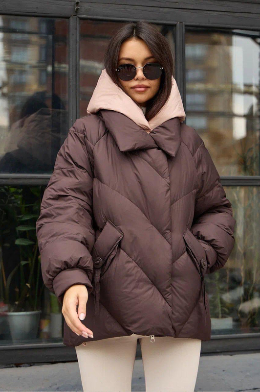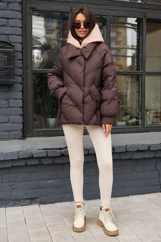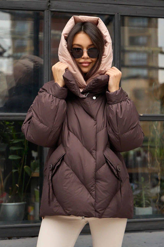 Модель брендового пуховка 2025-2026 года. Изделие свободного фасона с фигурной строчкой. Но главный плюс куртки помимо теплоты неповторимый внешний вид. Приходите к нам в шоу рум чтобы померить и купить пуховик, есть несколько расцветок и все размеры.