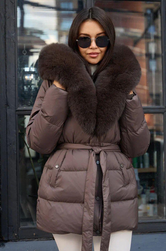 Теплый пуховик приталенный на зиму сшитый из ткани с пухом внутри. Модель выполнена как свободная длинная куртка с воротником и мехом. Застегивается на молнию и кнопки. Длинные рукава завершены тканевыми манжетами с резинками, предотвращая поддувание ветра. Недорогой и качественный пуховик создан для Российских зим и не даст нашим женщинам замерзнуть.