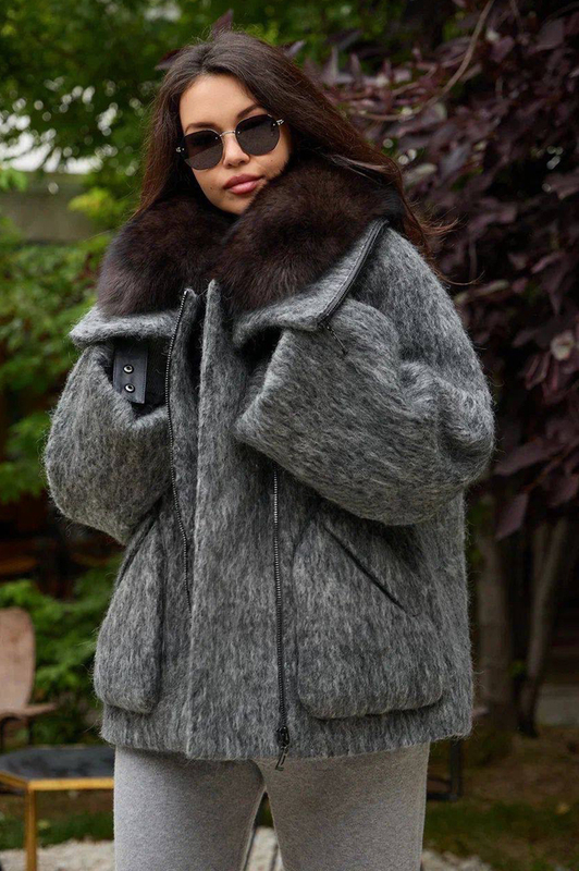 Пуховик Бомбер с мехом вдоль молнии Enva Rross