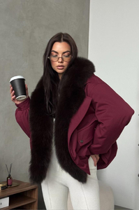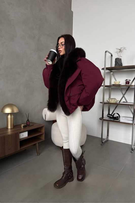 Пуховик Tannossto бордовый с мехом