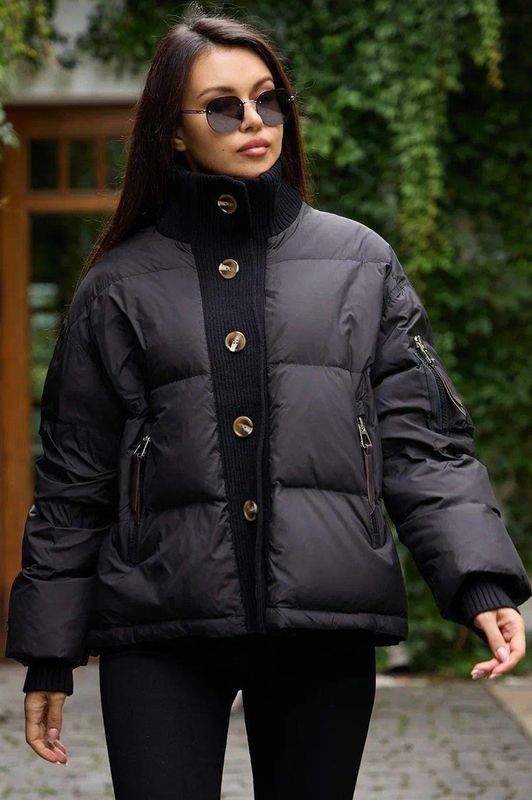 Пуховик женский Pang Million короткий. Модель с высоким воротником, плотной полиэстеровой тканью, с пропиткой. Без капюшона, застегивается на кнопки.