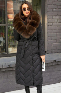 Этот стильный и теплый пуховик идеально подходит для зимних морозов. Он выполнен в черном цвете, что придает ему элегантный и современный вид. Воротник этого пуховика украшен мехом песца, который не только придает ему роскошный вид, но и дополнительно утепляет шею и лицо в холодные дни.