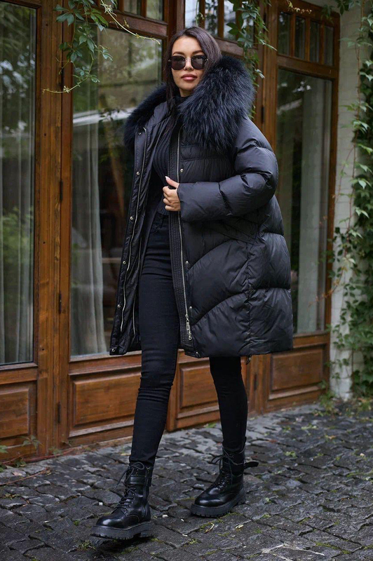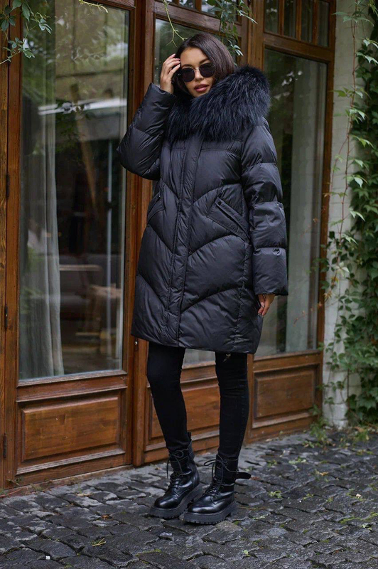 Женский пуховик Votarun длинный с мехом