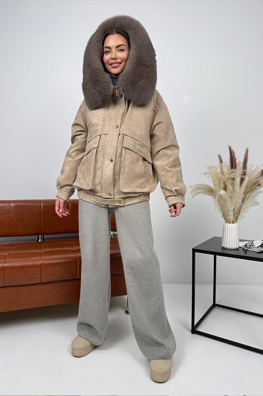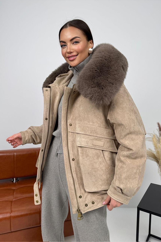 Стильный пуховик Btn Button с накладными карманами, наполнение модели пух-перо, капюшон украшен натуральным мехом песца. Теплый, легкий, качественный фабричный пошив. Модельный ряд 2025.