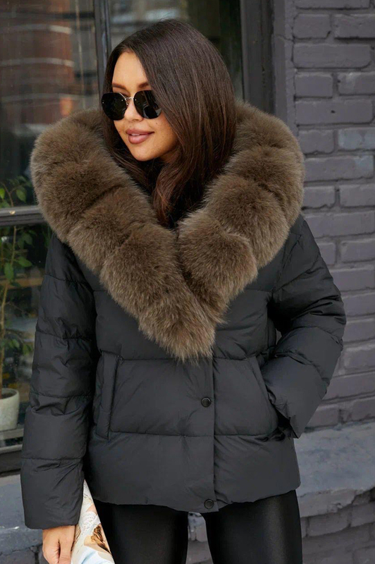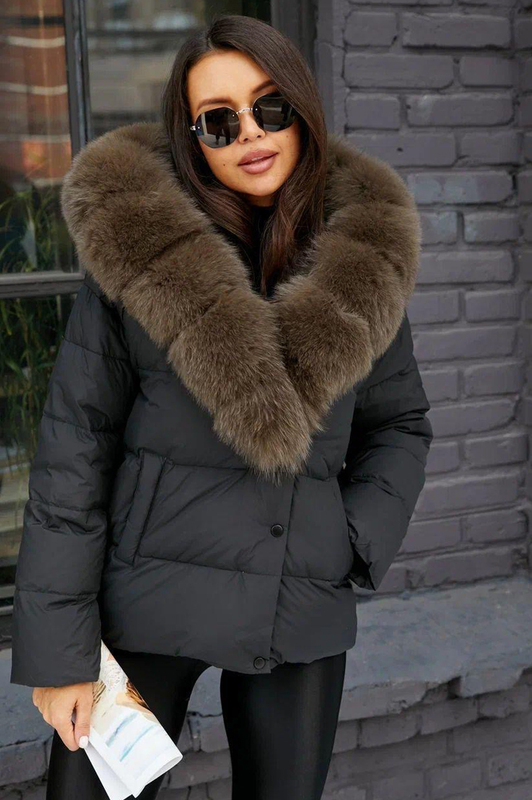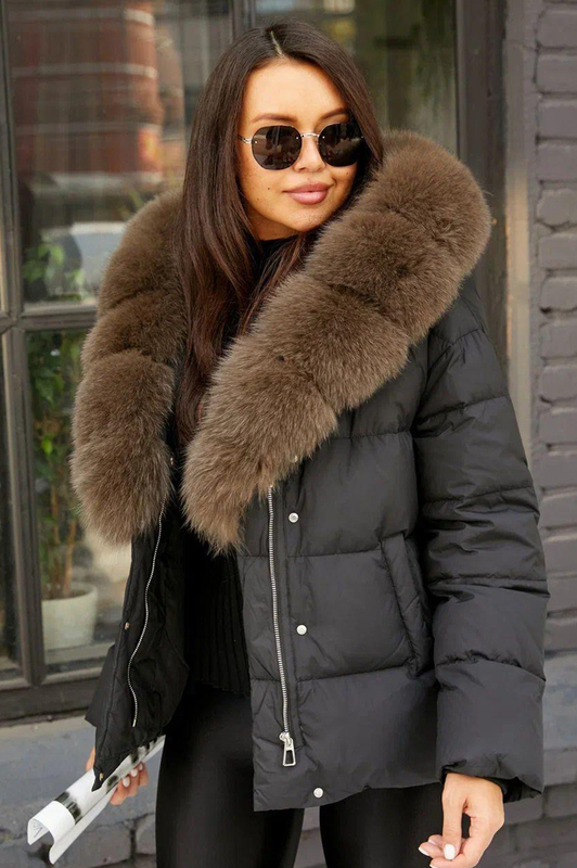 Женский пуховик 2025 зимний с воротником из песца